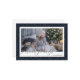 Las tarjetas de felicitación de la temporada de fotos en azul y oro personalizado con título de caligrafía y un marco fotográfico nevado azul. Personalice fácilmente estas tarjetas de felicitación con su imagen, nombre de familia y texto.