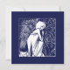 Una encantadora tarjeta de felicitación navideña en una inusual forma cuadrada, con una reproducción de una ilustración de un ángel Art Nouveau arrodillado del famoso artista Aubrey Beardsley. En el reverso, una plantilla "Bendiciones Navideñas de la familia [su nombre]: Simplemente escriba o borre las casillas de texto donde dice "personalízalo". Mucho espacio para escribir también. En azul y blanco.