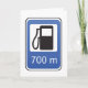 Necesito saber dónde está la gasolinera más cercana y luego consultar este cartel. Es una señal de la gasolinera. La imagen es de una bomba de gas y luego debajo está escrita a 700m. Esta señal de la estación de gasolina se ve genial en estas tarjetas de felicitación