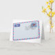 Este diseño es un sobre de airmail de aspecto familiar. Tiene el pegatina de correo aéreo en la punta izquierda y un sello arriba a la derecha. Este diseño de sobre de correo aéreo se ve muy bien en estas tarjetas de felicitación