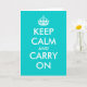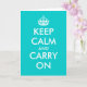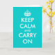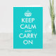 Tarjetas de felicitación Turquoise Keep calm and carry on. Tarjeta vintage linda para amigos, familiares, compañeros de trabajo, empleados corporativos, colegas, personal, equipo. Texto personalizable y color de fondo personalizado. Crea tu propia parodia de keep calm and carry on. Genial para Navidad, fiestas, celebraciones, etc.