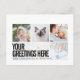 Tarjetas postales universales modernas y nítidas personalizadas con 6 fotos familiares, con un elegante collage de fotos con 6 imágenes personalizadas, su mensaje de felicitación en negrita y tipografía sans serif moderna y llamativa, su nombre, fecha, año, mensaje en la parte trasera en una tipografía minimalista y fresca sans serif. Estética minimalista en blanco y negro, pero puede editar la tarjeta postal en cualquier color.