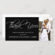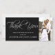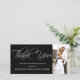 Elegante Tarjeta Fotográfica De Gracias. Diseño de Elke Clarke ©2011. Elija su color de fondo agregue los nombres de su novia y novio, el mensaje y la fecha del boda. Intercambie esta foto de ejemplo por su cuenta.