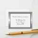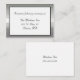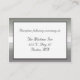 Bonita tarjeta de recinto boda pequeña, de color blanco, con un marco plateado y acento negro. Personalizar el texto para adaptarlo a sus necesidades.