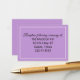 Elegante tarjeta de gabinete con información sobre la recepción de bodas en color blanco y violeta, con texto en personalizado negro listo para personalizar.