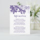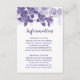 Estas tarjetas de información boda cuentan con flores de orquídea morada. Utilice estas tarjetas para dar a sus huéspedes bodas información sobre direcciones, alojamiento o cualquier otra información importante que necesiten sobre su boda. Estas tarjetas de información forman parte de una colección que incluye artículos y regalos de juego de artículos de papelería para bodas. Visite la página de la colección en nuestra tienda para ver toda la gama de productos que puede personalizar para sus necesidades de boda.