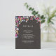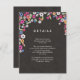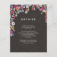Tarjetas de información perfectas para coincidir con nuestras invitaciones a bodas florales de pizarra. Cambia el texto a lo que quieras compartir con los invitados - instrucciones, alojamiento, información de la cena de ensayo, etc. Enmarcado con flores silvestres pintadas a mano de colores en rosa, azul, amarillo y blanco, con un fondo negro de pizarra texturada.