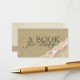 Lazo vintage y arco rosa sobre el diseño de burlap insertar tarjetas para complementar invitaciones. Un libro para el bebé, información del registro o cambio de texto para cualquier mensaje.