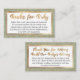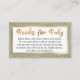 Aquí se presenta una sofisticada versión de la popular tendencia de los libros de ducha para bebés. Este diseño ha sido embellecido con un confetti de oro falso y un texto de cabecera metálico de Relieve metalizado de oro oscuro y liso. Detrás de una insignia blanca he puesto el fondo como verde sabio; esto es editable y se puede cambiar a cualquier color que prefieras. Sobre el color de fondo he añadido gráficos que simulan el confeti purpurina dorado. // En la parte delantera, un encabezado dice "Libros para Bebé" en un tipo de letra negrita y elegante, que he añadido como superposición gráfica. Otro de esos gráficos, colocados en la parte de atrás, dice "Gracias por ayudar a construir la biblioteca de nuestro bebé". Los gráficos de texto han sido embellecidos en el tratamiento falso del Relieve metalizado de oro. A continuación, se configuran cuadros de texto para mi mensaje editable en cada lado. Se han rellenado con el tipo de portaobjetos que puede conservar o cambiar a su propia redacción, tipo de letra y color preferidos. Internet está exuberante con posibles frases y hay muchos poemas populares que describen el propósito de la solicitud del libro, que reemplaza a las costosas tarjetas y ayuda a apuntar el recién nacido hacia una apreciación de la lectura. Decidí escribir un poco peculiar de verso para el frente y un mensaje amistoso y explicativo para el fondo. Utilice mi original o reemplácelo por una de las muchas otras opciones que considere convenientes. // 88 // Diseñado por Melody Watson para la Muserie de Papel.