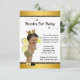Tarjetas para baby shower de 'Niños traen un libro' con adorable bebé afroamericano vestido con un traje de abeja bumblebee en un bonito fondo negro y dorado con abejas volando. Puedes personalizar estas tarjetas de inserción para baby shower con tus detalles en el estilo de fuente y redacción de tu elección.