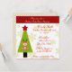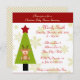 Una tarjeta de invitación para una ducha de bebé que ofrece un fondo de copo de nieve crema clara, junto con un borde rojo en la parte superior de la tarjeta de invitación. El fondo se ha combinado con un pequeño bebé Navidades vestido con un traje de reno colocado en un árbol navideño festivo a la izquierda de la tarjeta. La parte frontal de la tarjeta también ofrece información completa sobre el fiesta que puede ser personalizada con los detalles del fiesta de la ducha de bebé de sus propios Navidades. Voltea la tarjeta para encontrar un diseño de tablero de ajedrez crema claro en la parte trasera de la tarjeta. Fantástico para una celebración de fiesta de ducha de bebé, Navidades con temática Chica, niño o neutral. Visita la tienda para encontrar productos de Navidad de ducha para complementar tu tema.