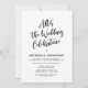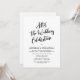 La tarjeta está diseñada, con la caligrafía informal "Después de la celebración de la boda" , y luego puede incluir los detalles de su celebración en fuente negra coincidente.