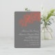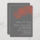 Invitaciones de boda elegantes vintage grises y coral con un diseño de florituras en cascada en la parte superior de la invitación. Puede cambiar el color del texto utilizando el botón "Personalizar". Plantilla fácil de editar.