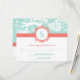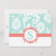 Tarjetas de Invitación de Boda con Monograma Damask Moderno y Caprichoso de Menta y Melocotón. Tarjetas de Respuesta de RSVP de Verde Menta Arcadia y Coral Melocotón Emberglow