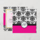 Invitaciones de Boda Monograma/Damask Negro/Rosa Intenso