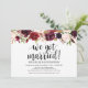 Esta tarjeta de invitación temática floral burgundy rústica es perfecta para la celebración de su recepción de boda / fiesta. Agregue sus datos en fuente / letra negra a juego.