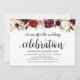 Esta tarjeta de invitación temática floral borgoña rústica es perfecta para la celebración de su recepción de boda/fiesta. Agregue sus datos en fuente / letra negra a juego.