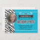 Tarjetas de invitación de cumpleaños con foto para niñas en verde turquesa y cebra. Personalice con su propio texto y foto. Esto también está disponible para comprar en mi tienda sin una FOTO.