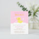 Unas adorables invitaciones de cumpleaños de pato de goma amarillo para invitar a los invitados a celebrar con la futura mamá. Muchas burbujas de ducha y un dulce fondo de baldosas rosadas de baño. ¡Dulce y adorable! Personaliza fácilmente con los detalles de tu fiesta.