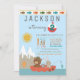 Tarjetas de invitación de cumpleaños de pesca con oso y conejo de bosque pescando en un bote en un lago de montaña en la parte frontal y diseño de agua en la parte trasera. Estas invitaciones de cumpleaños de pesca para cualquier número se personalizan fácilmente para su evento simplemente agregando sus detalles. También puede cambiar el color de fondo en estas adorables invitaciones de cumpleaños de pesca.
