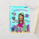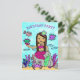 Una forma linda y asequible de invitar a amigos a la fiesta de cumpleaños de una niña. Un estilo de arte popular dibujado a mano caprichoso sirena afroamericana o hispana y sus amigos bajo el mar invitacion de cumpleaños de niña brillantemente coloreada.