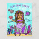 Una forma adorable y asequible de invitar a amigos a la fiesta de cumpleaños de una niña. Un estilo de arte popular dibujado a mano caprichoso sirena afroamericana o hispana y sus amigos bajo el mar invitacion de cumpleaños de niña brillantemente coloreada.