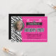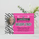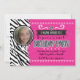 Tarjetas de Invitación de Cumpleaños para Niñas con Rosa Caliente y Cebra. Personalice con su propio texto y foto. Esto también está disponible para comprar en mi tienda sin FOTO.