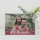 Tarjetas de Invitación de embarazo para Navidades fotográficos. ¡Esperando padres! La moderna escritura de tipografía con letras en blanco y con letras rápidas "cuanto más alegre" con una tarjeta de degradado rojo para compartir tus felices noticias con familiares y amigos en temporada de vacaciones. En el fondo de los copos de nieve en color rojo. Puede personalizar el diseño reemplazando el texto de muestra y la foto horizontal. #3344
