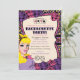 La invitación de fiesta de chica pin-up vintage presenta estampado de leopardo, una divertida chica pin-up y colores brillantes y vívidos.