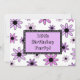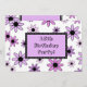 Invitación a una fiesta de cumpleaños número 15 del chica con divertidos ilustraciones de flores moradas, rosas y negras, elegante y bonito, personalizable completo con los detalles de su fiesta.