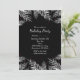 Tarjetas de Invitación Negras de Fiesta con Pino Blanco y Bayas Rojas. Personalice para cualquier evento.