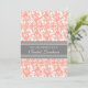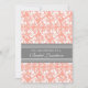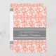 Invitaciones para el almuerzo nupcial en elegantes tonos naranja color melocotón rosa, gris y blanco clásico de adamascado floral, moda y femenino, personalizable con los detalles de la ducha. También disponible en tarjetas de agradecimiento e invitaciones para la fiesta nupcial.