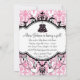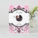 Elegantes tarjetas de invitación para baby shower de niña con damasco rosa y negro. Esta adorable tarjeta de invitación para baby shower de niña con damasco rosa se personaliza fácilmente para su evento agregando los detalles del evento, estilo de letra, tamaño y color de letra, y redacción.