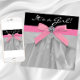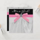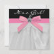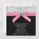 Elegante invitación de baby shower de niña rosa y negro con lazo blanco. Esta adorable invitación de baby shower de niña rosa y negro se personaliza fácilmente para su evento agregando los detalles del evento, estilo de fuente, tamaño y color de fuente, y redacción.