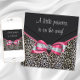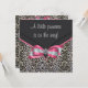 Elegante invitación de baby shower de leopardo rosa. Esta adorable invitación de baby shower de leopardo rosa tiene un hermoso lazo plateado y rosa centrado en un diamante y se personaliza fácilmente para su evento agregando los detalles del evento, estilo de fuente, tamaño y color de fuente, y redacción.