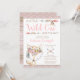 Tarjetas de invitación para baby shower de zorrita con adorable zorrito tribal y flechas florales sobre un bonito fondo azteca rosa y dorado. Estas invitaciones para baby shower de Wild One se personalizan fácilmente para su evento con solo agregar sus datos.