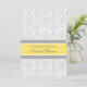 Invitaciones a la ducha de novias en elegantes tonos limón amarillo, gris y blanco clásico de adamascado floral, moda y femenino, personalizable con los detalles de la ducha. También disponible en tarjetas de agradecimiento e invitaciones para la fiesta nupcial.