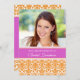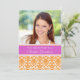 Invitaciones a la plantilla de personalizado para el almuerzo nupcial en elegantes y luminosos tonos rosa fuchsia, naranja tangerino y blanco clásico de damasco floral, elegante y femenino, personalizable con los detalles de la ducha. También disponible en tarjetas de agradecimiento e invitaciones para la fiesta nupcial.