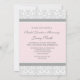 Invitaciones a los almuerzos nupciales en elegantes tonos rosa pastel rosa claro, gris y blanco clásico de adamascado floral de color gris pastel, moda y femenino, personalizable con los detalles de la ducha. También disponible en tarjetas de agradecimiento e invitaciones para la fiesta nupcial.