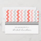 Invitaciones a mediodía nupciales en elegantes melocotones naranja rosa, gris y blanco retro y chevron casual zigzags estripes, moda y femenina, personalizable con los detalles de la ducha. También disponible en tarjetas de agradecimiento e invitaciones para la fiesta nupcial.