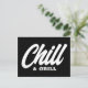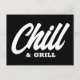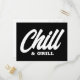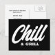 Tarjetas de invitación para fiesta de BBQ Chill & Grill. Personaliza el texto de la invitación en el reverso. Diseño de tipografía script en negro y blanco genial. Ideal para cumpleaños de verano, graduación, reunión familiar y más.