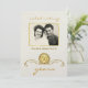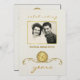 Tarjetas de invitación personalizadas para la fiesta del 50 aniversario -- Acentuados dorados vintage elegantes en fondo de pergamino marfil con marco de foto y monograma clásico antiguo. Agrega tu propia foto y personaliza el nombre, fecha y detalles para tu celebración de aniversario especial. Sobres a juego, franqueo y tarjetas de agradecimiento disponibles. **NOTA: Tamaño para tarjetas de invitación de 5x7. Otros tamaños y estilos disponibles en la galería.
