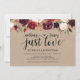 Esta tarjeta de invitación con tema floral borgoña rústica es perfecta para la celebración de su recepción / fiesta de boda. Agregue sus datos en fuente / letra negra a juego.
