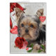 Yorkshire Terrier presenta con los corazones y los rosas para la mamá en ésta de una tarjeta de Navidad buena perfecta para el día o el día de San Valentín de madre.