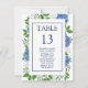 ¿Buscando una tabla de asientos con número de tabla floral? Mira nuestras tarjetas de la tabla de asientos de Hydrangeas Azules para Boda es una hermosa acuarela con hortensias azules y vegetación. Perfecto para un boda de primavera/verano. Puede personalizar seleccionando "Personalizar esta plantilla" o si desea realizar una personalizar aún más de este diseño, seleccione "Editar usando la herramienta Diseño". Si necesitas artículos coincidentes, por favor contáctame.