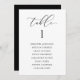 Tarjetas de la tabla de asientos para bodas: utilice estas elegantes y modernas listas de mesas en blanco y negro para su tabla de asientos en su boda o evento. Este diseño presenta la palabra "Tabla" en un guión romántico y elegante. Está decorado en negro, ¡pero puedes cambiar el color a lo que quieras! Haga clic en "personalizar más" y haga clic en el elemento para cambiar el color. Consulte nuestra sección de medios para obtener ideas. Se pueden colgar dentro de un marco demasiado grande o incluso pegarlos a un gran espejo. Poner cuadros individuales...¡hazte creativo! Este diseño está configurado en negro, pero puede cambiarlo al final: