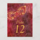 El número de la tabla en esta tarjeta adornada y elaborada del número de la tabla del boda de la mascarada o del carnaval del Victorian de Borgoña y del oro o de la ocasión especial es completamente adaptable. Para cambiar el número de la tabla utilice la opción de la personalización. Para éstos, usted debe cambiar el número de la tabla, cambiar la cantidad a 1, y entonces añadirla a su carro y repetir el proceso para todas las tarjetas de la tabla que usted necesita. Para cambios más extensos a la tarjeta incluyendo cambios a la fuente, el color de la fuente, el tamaño de fuente, o la colocación del texto, utilizan la opción del personalizar. Las características del diseño una máscara de lujo con las plumas. Haría una tarjeta agradable de la tabla para cualquier acontecimiento de la bola de mascarada incluyendo acontecimientos corporativos, recaudadores de fondos, acontecimientos caritativos y el dulce 16 cumpleaños.