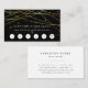 Las tarjetas de fidelización a la moda para artistas de maquillaje, esteticistas, peinados, salones o spas tienen letras blancas clásicas en un fondo negro y nítido cruzado con cadenas de luces falsas de cuerda de Relieve metalizado dorado. Añada el nombre de su negocio y la oferta de fidelidad al cliente por debajo con seis círculos de punzonaje, y personalice la parte posterior con sus datos de contacto.