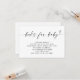 Esta encantadora tarjeta de libros para bebé presenta un diseño minimalista y caligrafía moderna, perfecta para un baby shower elegante y neutral. ¡Edite fácilmente la mayoría de las palabras para que coincidan con su evento! Los colores del texto y el fondo son totalmente editables —> haga clic en el botón "Editar usando la herramienta de diseño" para editar.