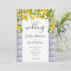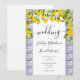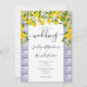 Con limones, flores y un patrón de baldosas mediterráneas azules, esta elegante invitación de boda botánica se puede personalizar con la información de su evento especial. Diseñada por Thisisnotme©